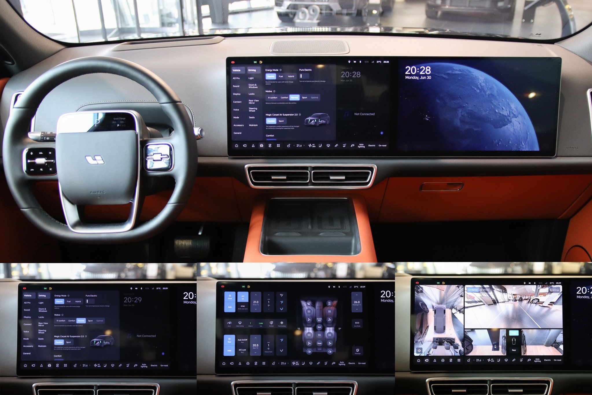 • Электронный стояночный тормоз (EPB), Система контроля давления в шинах (TPMS), Ионизатор воздуха, Панорамная крыша, Трехзонный климат-контроль с очистителем воздуха и датчиком уровня CO2, Система контроля спуска (HDC), USB Type-C (60 Вт) для задних пассажиров x2, Режимы движения: Комфорт/Стандарт/Спорт/Макс. Динамика, Быстрая беспроводная зарядка для передних пассажиров, 50Вт, с охлаждением x2, Солнцезащитная шторка панорамной крыши, Электронная система стабилизации (ESP), Память положения сидений первого ряда, Рулевое колесо с подогревом, Комфортная подушка сидений первого и второго ряда, SPA-массаж, 10-точечный (спинка) сидений первого ряда, Электрорегулировка рулевого колеса (4 направления), Подстаканники для передних /задних пассажиров x2, Система мониторинга внимания водителя, Проекционный дисплей высокого разрешения (HUD), Электроподогрев боковых зеркал, Лампы для чтения для пассажиров первого и второго ряда, Вентиляция сидений подогрев сидений первого и второго ряда, 12V розетка: передний ряд / багажник, Камера заднего вида высокого разрешения, Атмосферная подсветка салона (256 цветов), 360 панорамная камера с высоким разрешением, Солнцезащитные козырьки с зеркалом и подсветкой, Система мониторинга качества воздуха (AQS), Дисплей переднего пассажира 15,7″ с 3K разрешением, Динамики аудиосистемы 19 динамиков/1920 Вт, Подсветка пространства для ног, Мультимедийная система Li Smart Space SS Pro, Мягкие подголовники сидений первого x2 и второго ряда x3, USB Type-C (15 Вт) для передних пассажиров x2, Электропривод сидений первого и второго ряда, 20-дюймовые серебристо-серые диски,шины 255/50 R20, с технологией снижения шума, Регулировка высоты открывания двери багажника: многоступенчатая, регулируемая, Адаптивная подвеска (CDC), Электропривод двери багажника, Центральный информационный дисплей 15,7″ с 3K разрешением, Режимы для сложных дорожных условий :преодоление препятствий/скользкая дорога/контроль на спусках, 21-дюймовые черно-серые диски,шины 265/45 R21, с технологией снижения шума