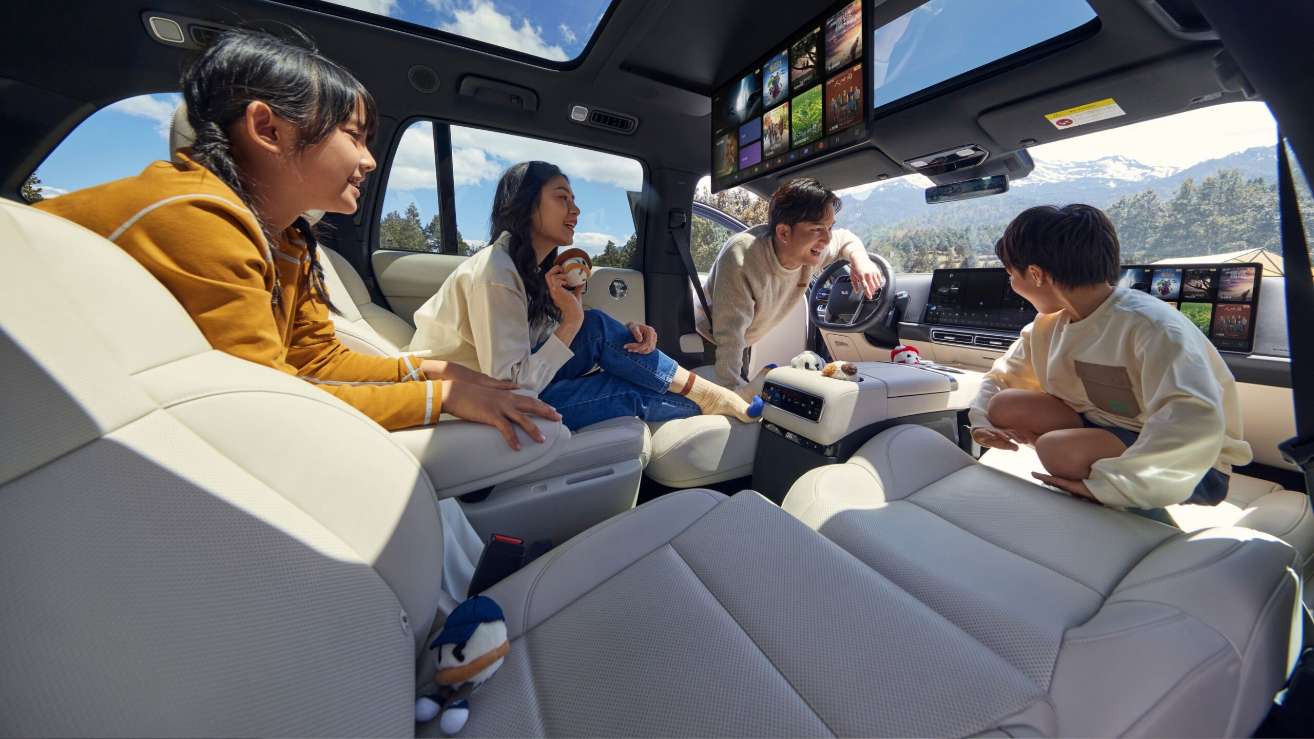 Двойные 15,7-дюймовые дисплеи центральной консоли и второго пилота, четкий интеллектуальный HUD, интерактивная панель безопасности, а также огромный 21,4-дюймовый экран домашнего кинотеатра на заднем сиденье — каждый дисплей интуитивно понятен и функционален. Благодаря плавной интеграции жестового, голосового и сенсорного управления ими могут легко пользоваться даже бабушки и дедушки с детьми.