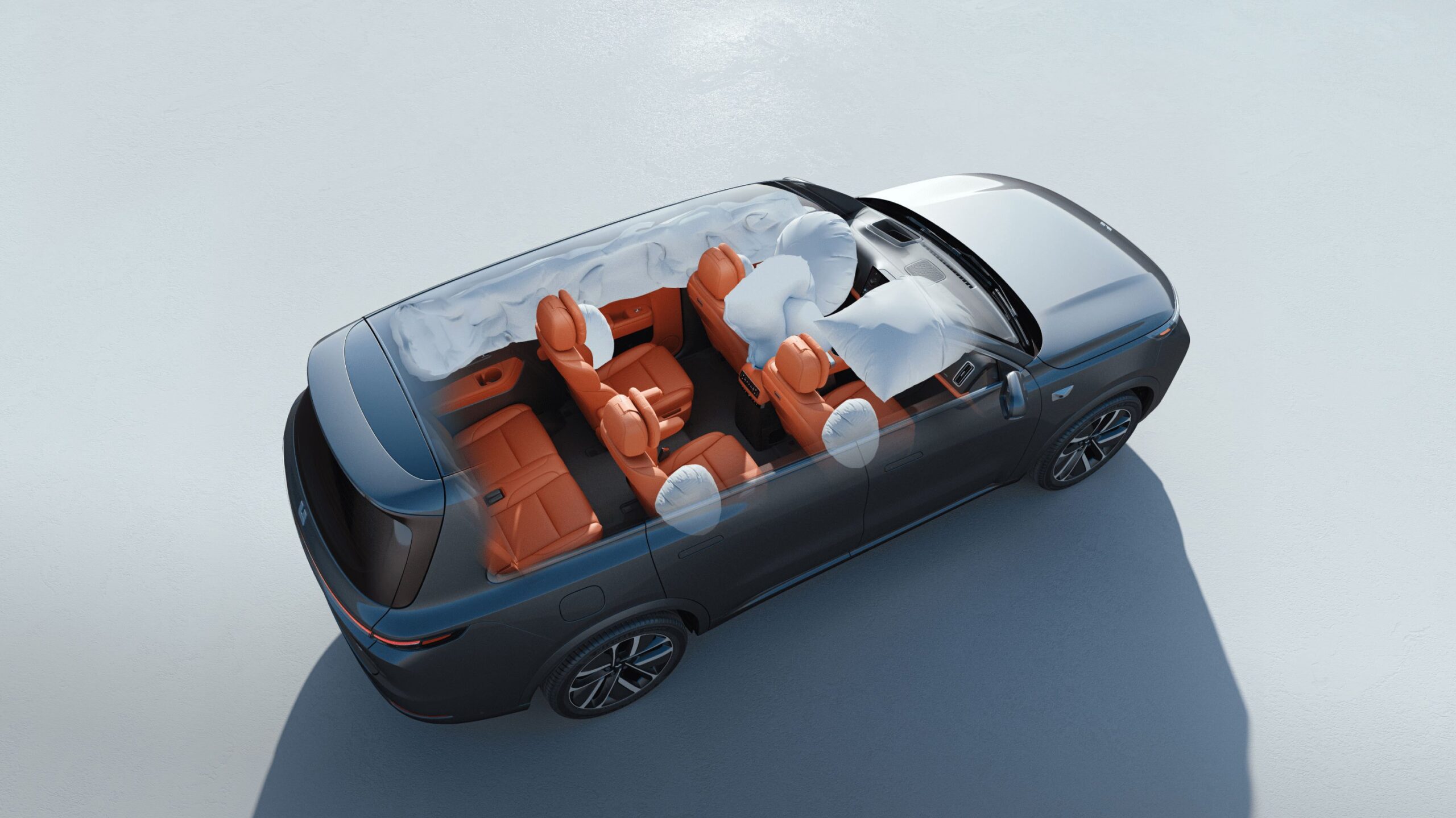 Соотношение высокопрочной стали и термоформованной стали более 75%6 в сочетании с двойными алюминиевыми передними противоударными балками позволяет Li L9 рассеивать передний удар и обеспечивать безопасность водителя и пассажиров.